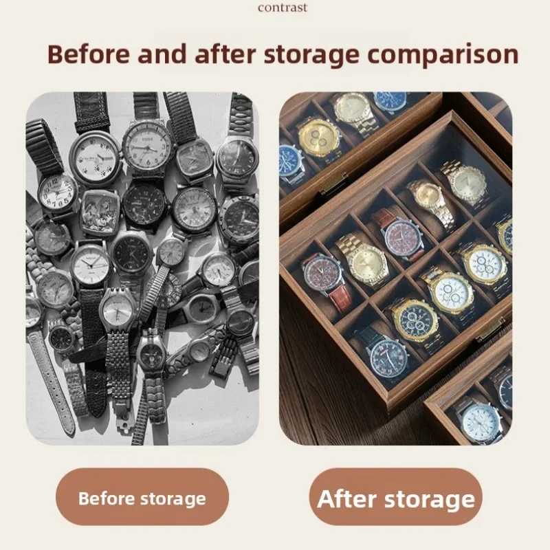 This wooden watch storage box is designed to keep your watches organized, protected, and easy to access. Crafted with a durable wood exterior and mixed interior materials, it helps protect watches from dust and minor scratches.